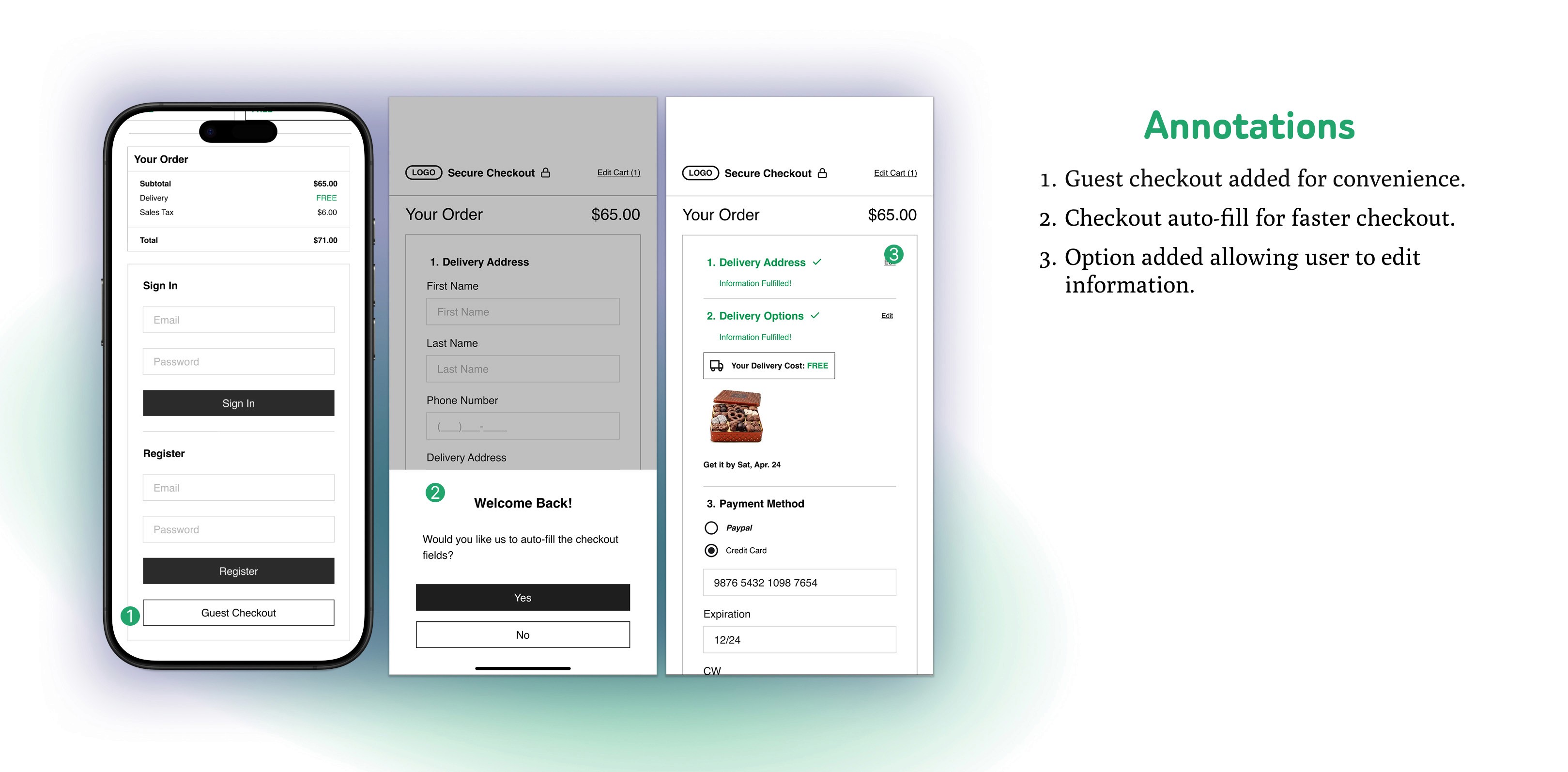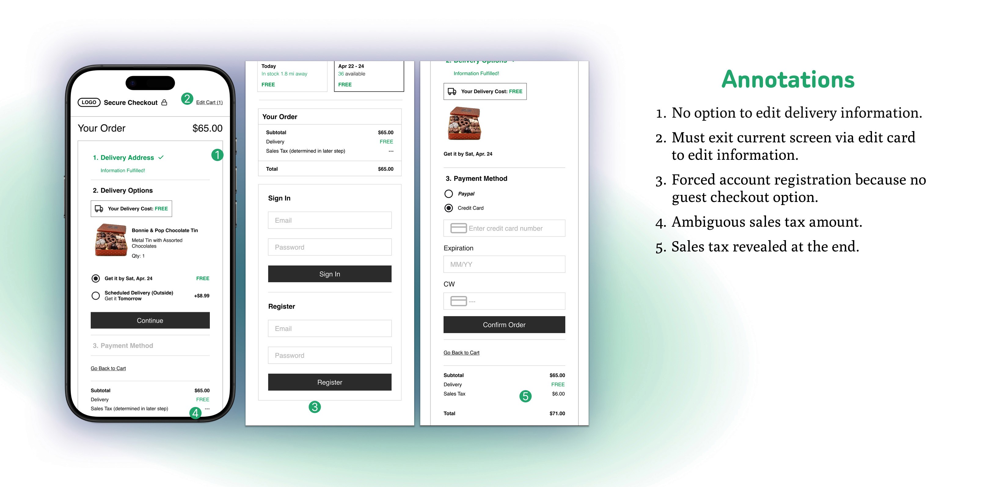 With the user testing and research data in mind, it is clear that most cart abandonment is due to easily avoidable friction. Forced account creation, additional hidden fees, complicated checkout processes, and trust issues drive 70% of shoppers away, costing the e-commerce industry over half a trillion dollars in revenue per year. But as illustrated by my A/B testing, these issues can be solved. A well-designed checkout with guest options, transparent fees, editable forms and one-click autofill streamlines transactions, eliminates frustration and builds trust. Many think these small tweaks are just aesthetic interface polishing, but these improvements would lead to an increase in conversion of about 35% and $260 billion. A multi-hundred billion dollar industry making small design errors like these would literally be leaving money on the table.