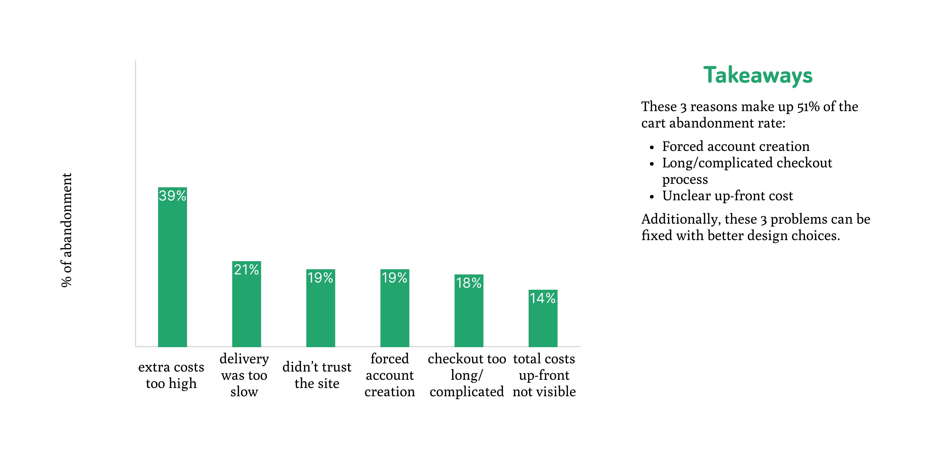 Aside from the “I was just browsing“ cases, here are the top reasons online shoppers abandon their carts: